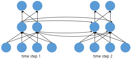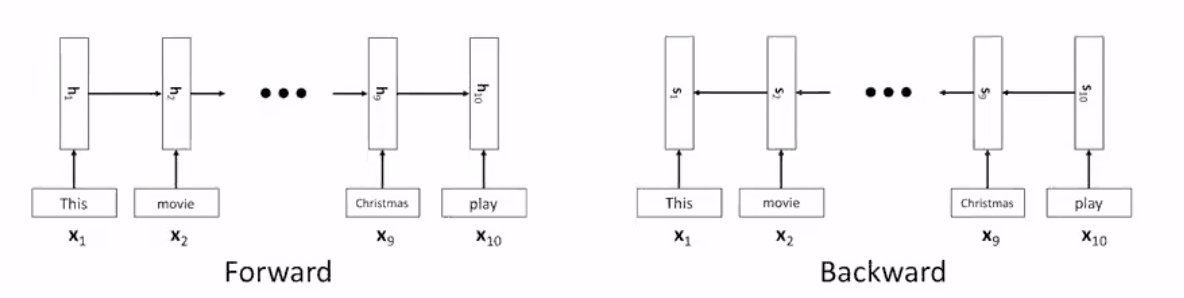 위 그림과 같이 Forward states와 Backward states 각각의 상태 정보를 갖고 있는 hidden layer가 있고 이 둘은 서로 연결되어있지 않다.