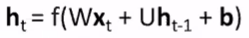 W와 U는 학습이 진행됨에 따라 업데이트 되는 가중치이고, xt는 t번째 input, b는 bias를 의미한다.