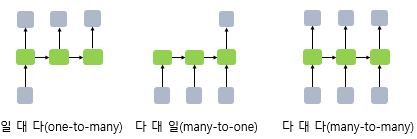 다 대 다(many-to-many) 구조 : 챗봇, 번역기, 개체명 인식 및 품사 태깅