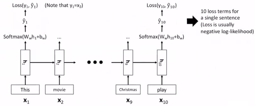기본적으로 RNN은 이전의 단어들을 바탕으로 다음 단어를 예측하는 형태이다.