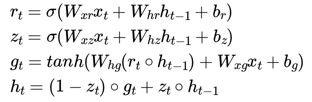 (위 링크에는 zt가 현재 정보의 사용 비율로 기술되어 있는데 어차피 zt라는 하나의 weigth를 1-zt와 zt로 나눠서 해석하는 것이므로 딱히 상관 없다.)