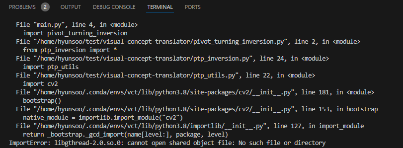 많은 블로그들을 검색해봐도 나오는 해결책은 apt-get install libglib2.0-0 명령어를 통해 libgthread-2.0을 설치하라는 것이였다. 그러나 나의 경우 연구실 서버에서 sudo 권한이 없기 때문에 저 명령어를 실행해도 새로운 문제가 발생했다.